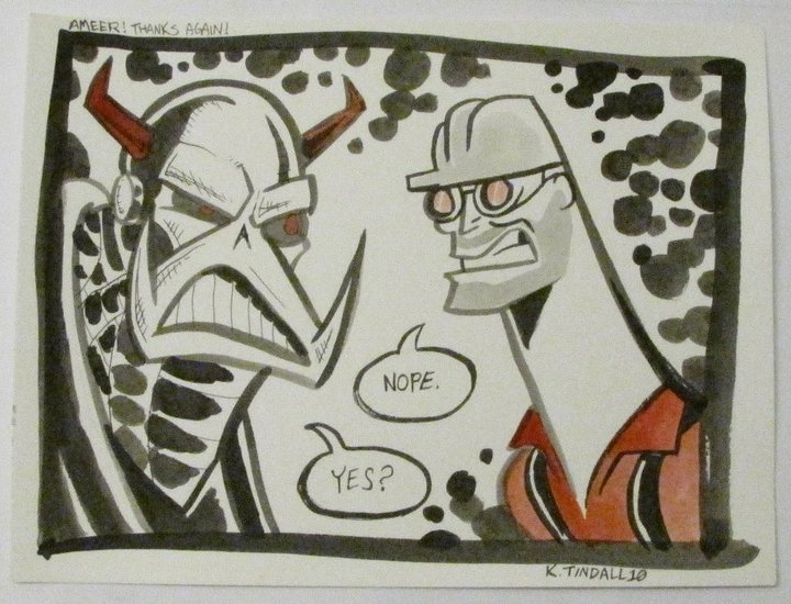 The Montreal mini-con held on Sunday was O.K., not fantastic. Lots of regulars but not a lot of new fans. It's always a good show for me, but the crowds were much more interested in browsing than buying. Had a great time chatting with Tom Fowler; he's a fantastic talent and a great guy to chat with. Good to meet Marcus To, as well; no time to talk with him but he seems like a pleasant cat.